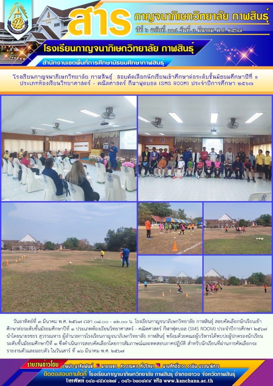 ประกาศรายชื่อผู้มีสิทธิ์สอบเข้าศึกษาต่อ ห้องเรียนวิทยาศาสตร์ คณิตศาสตร์ กีฬาฟุตบอล(SMS-Room)
